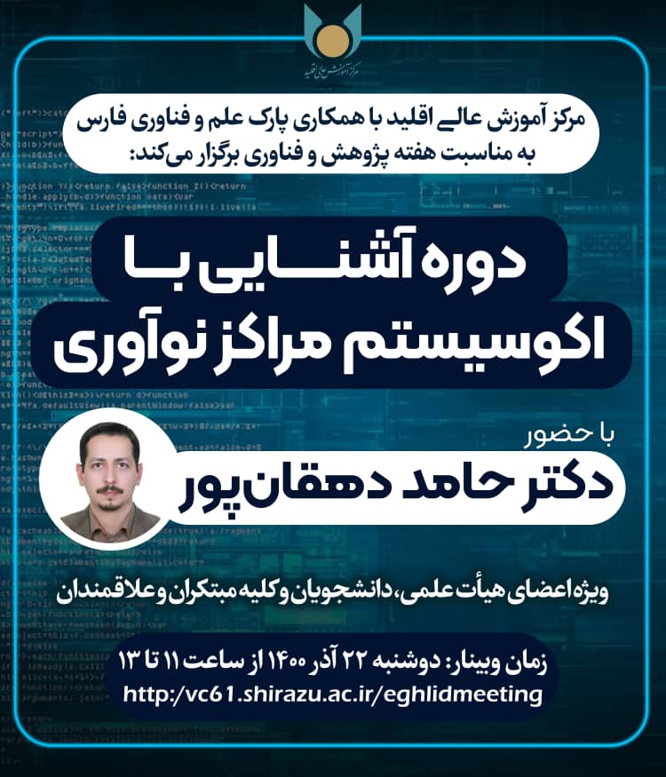 اطلاعیه برگزاری دوره آشنایی با اکوسیستم مراکز نوآوری