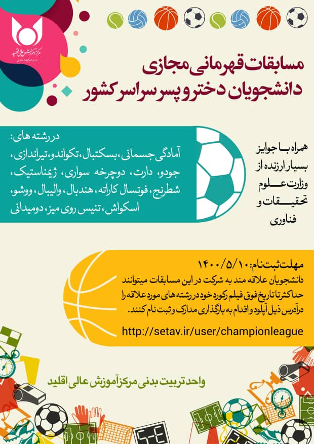اطلاعیه برگزاری مسابقات قهرمانی مجازی دانشجویان دختر و پسر سراسر کشور