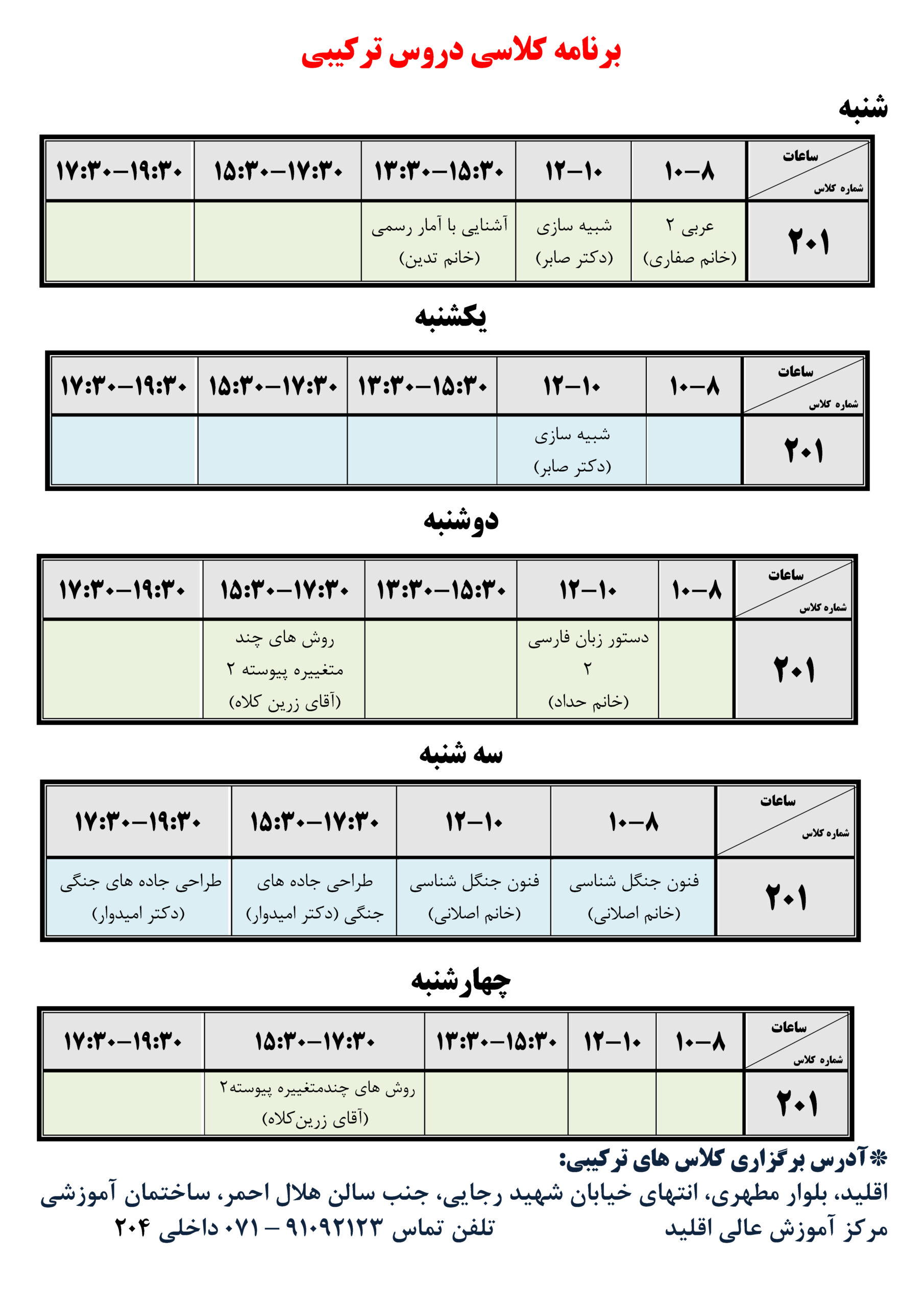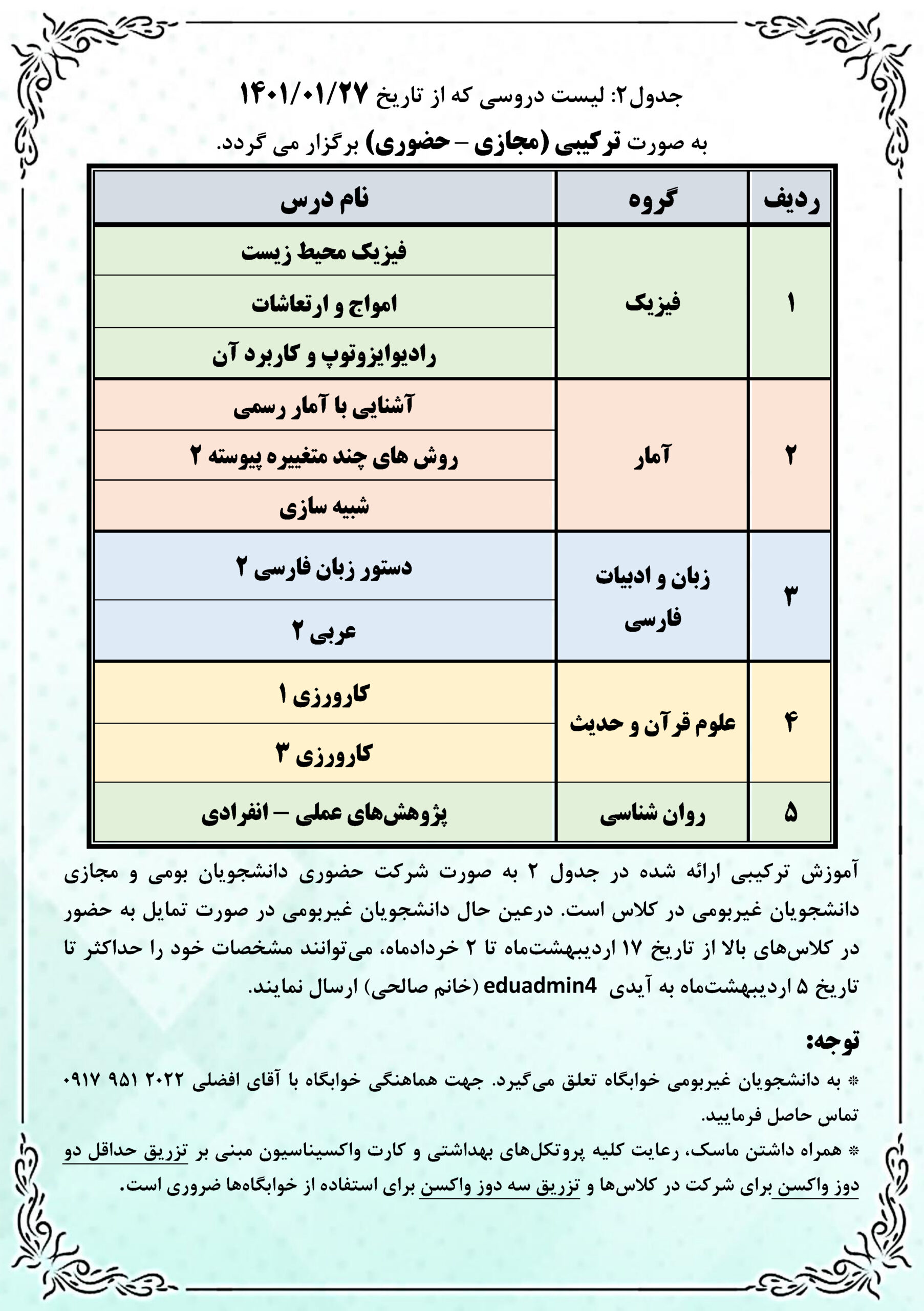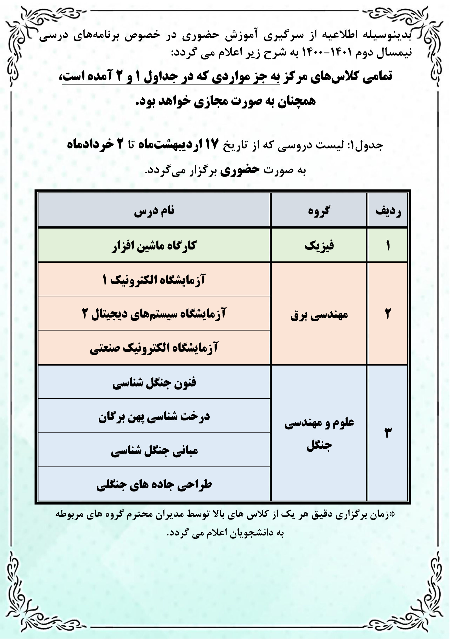 اطلاعیه نحوه تشکیل و برنامه کلاس ها