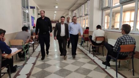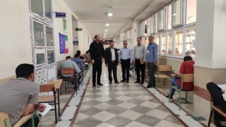 همچنین دکتر مهدی زارعی به همراه مهندس باقر مسعودی، معاون محترم فرماندار شهرستان اقلید از حوزه های برگزاری آزمون بازدید نمودند و ضمن عرض خداقوت به عوامل برگزاری این آزمون استخدامی, از دستگاه های خدماتی از جمله اورژانس، آتش نشانی، نیروی انتظامی و اتفاقات برق و آب شهرستان اقلید نیز تشکر نمودند.