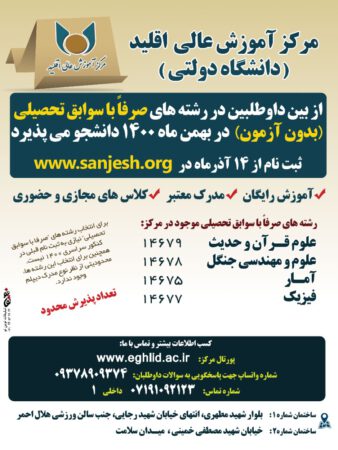 پذیرش دانشجو بر اساس سوابق تحصیلی در بهمن ماه ۱۴۰۰(مرحله تکمیل ظرفیت)