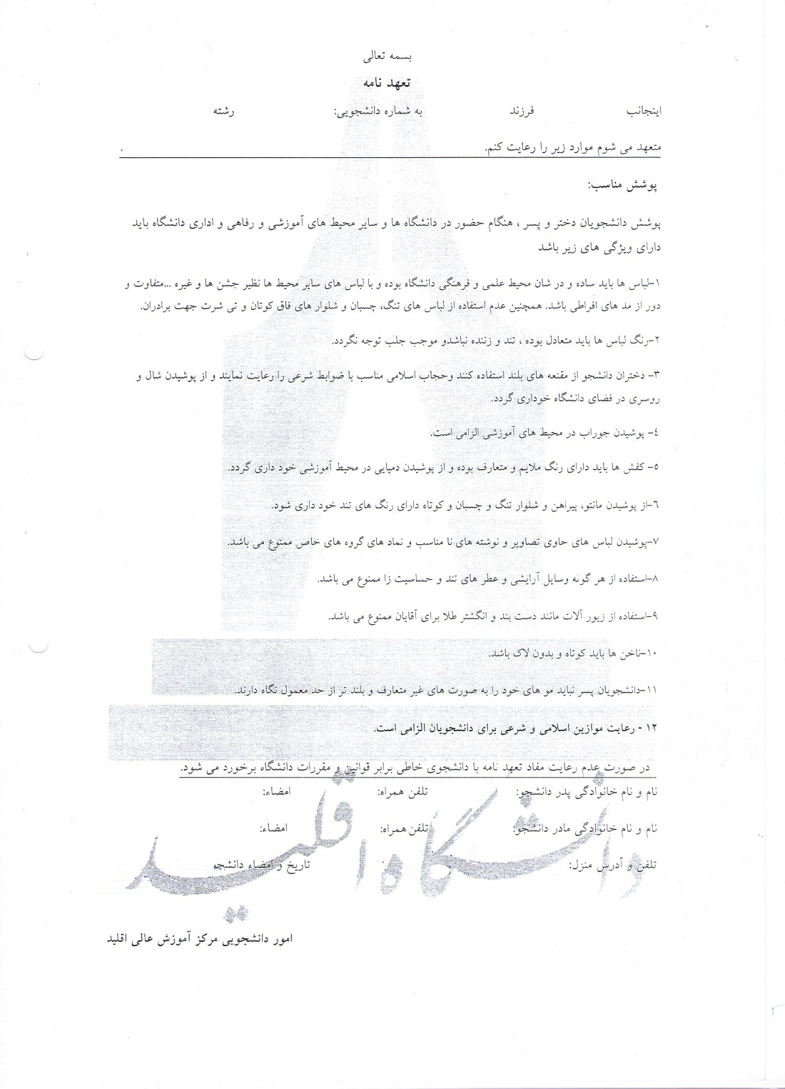 تعهدنامه انضباطی